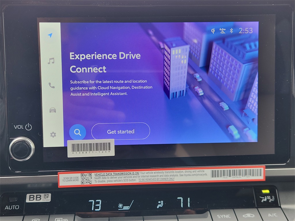 Passenger-side glove compartment8-in. Toyota Audio Multimedia touchscreen with USB-A media port, hands-free phone capability and music streaming via Bluetooth® wireless technology, SiriusXM® 3-month trial subscription. See toyota.com/connected-services for details. -