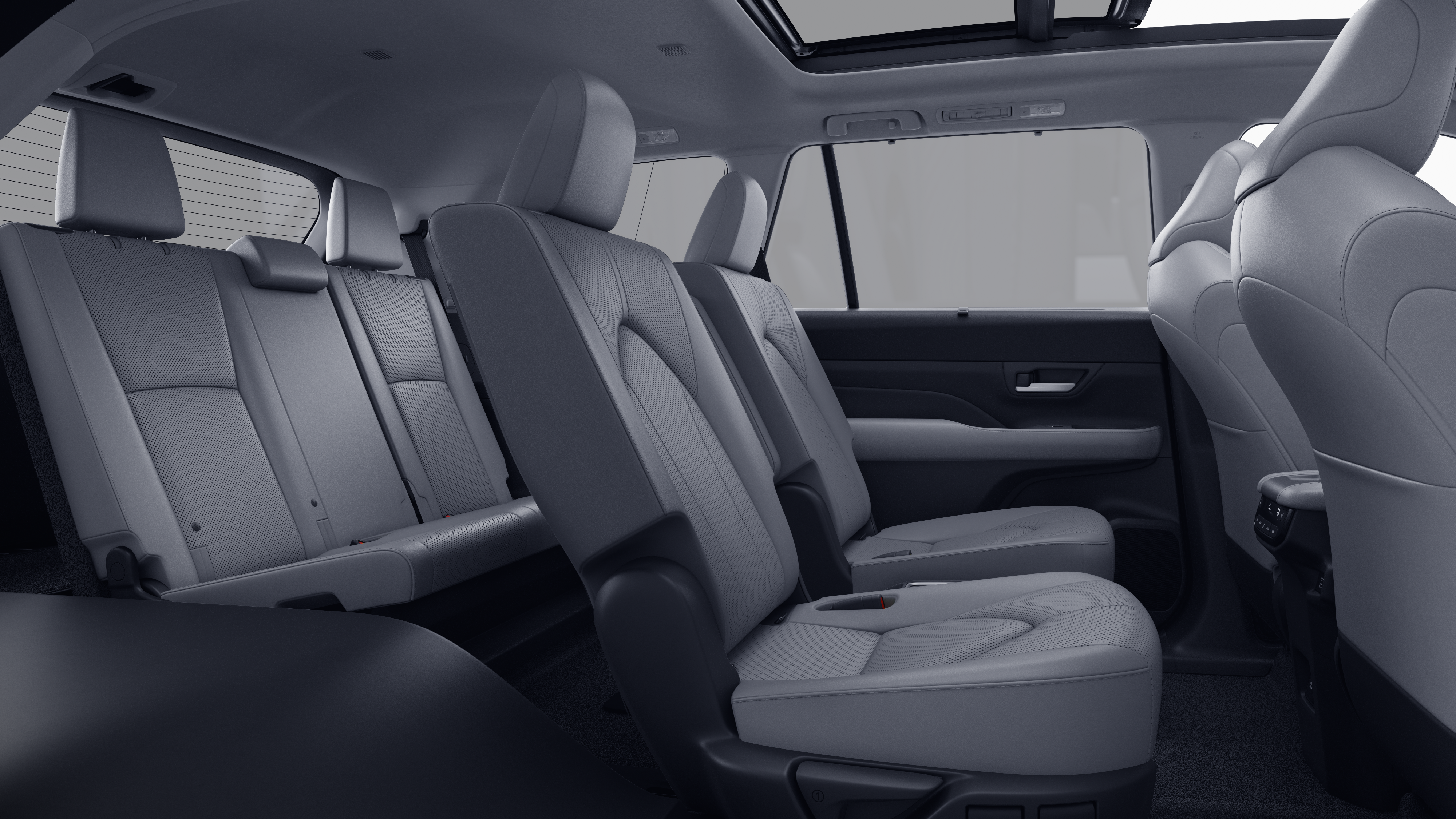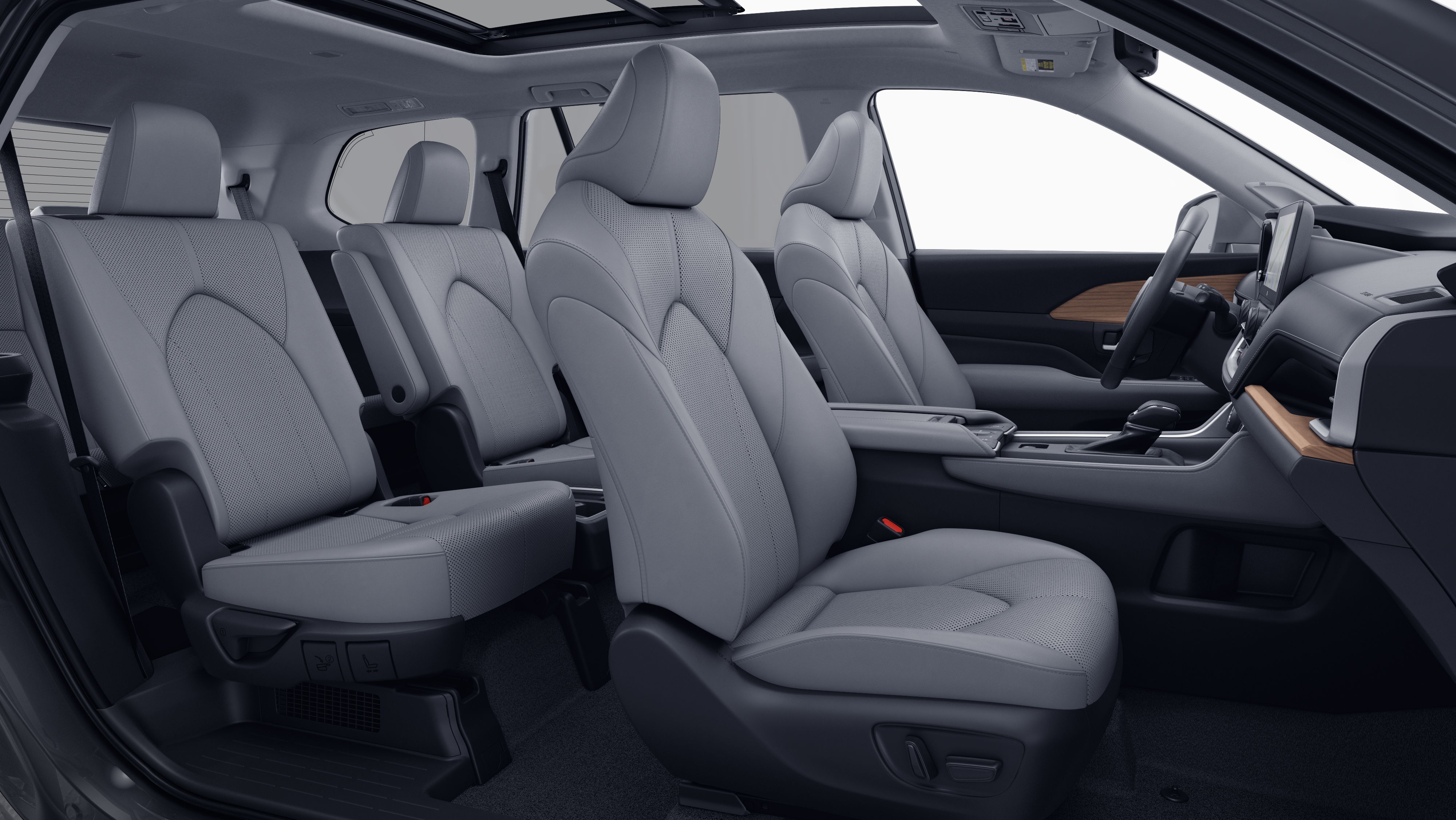 - 7-passenger seating with second-row fold-down captain's chairs and fold-down inboard armrests, adjustable headrests and two cup holders mounted on the floor; and 60/40 split, fold-down third-row seats with sliding headrests and recline function