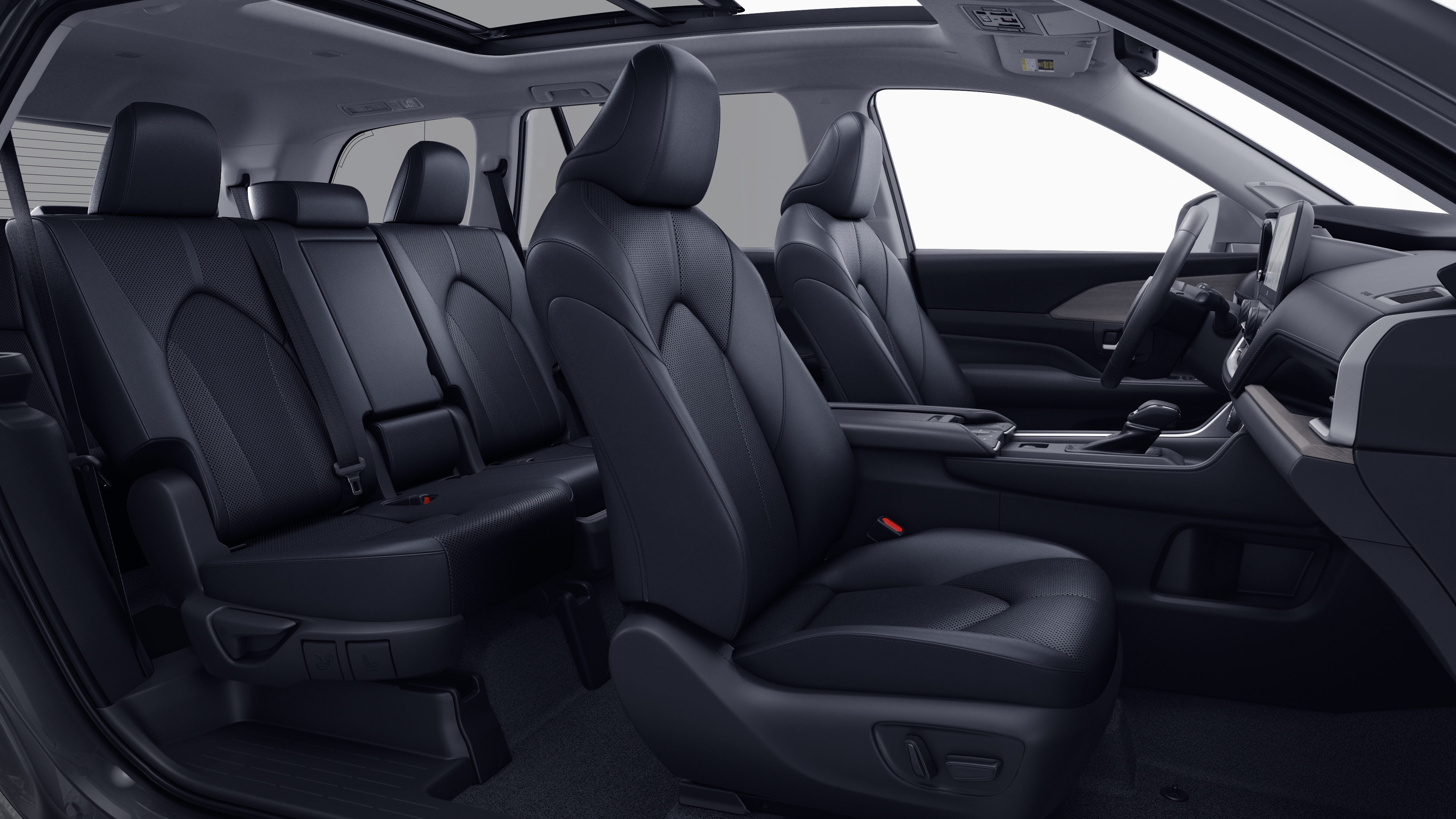 - 7-passenger seating with second-row fold-down captain's chairs and fold-down inboard armrests, adjustable headrests and two cup holders mounted on the floor; and 60/40 split, fold-down third-row seats with sliding headrests and recline function