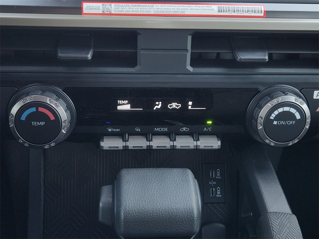 Dual illuminated rear center console-mounted USB charging ports.