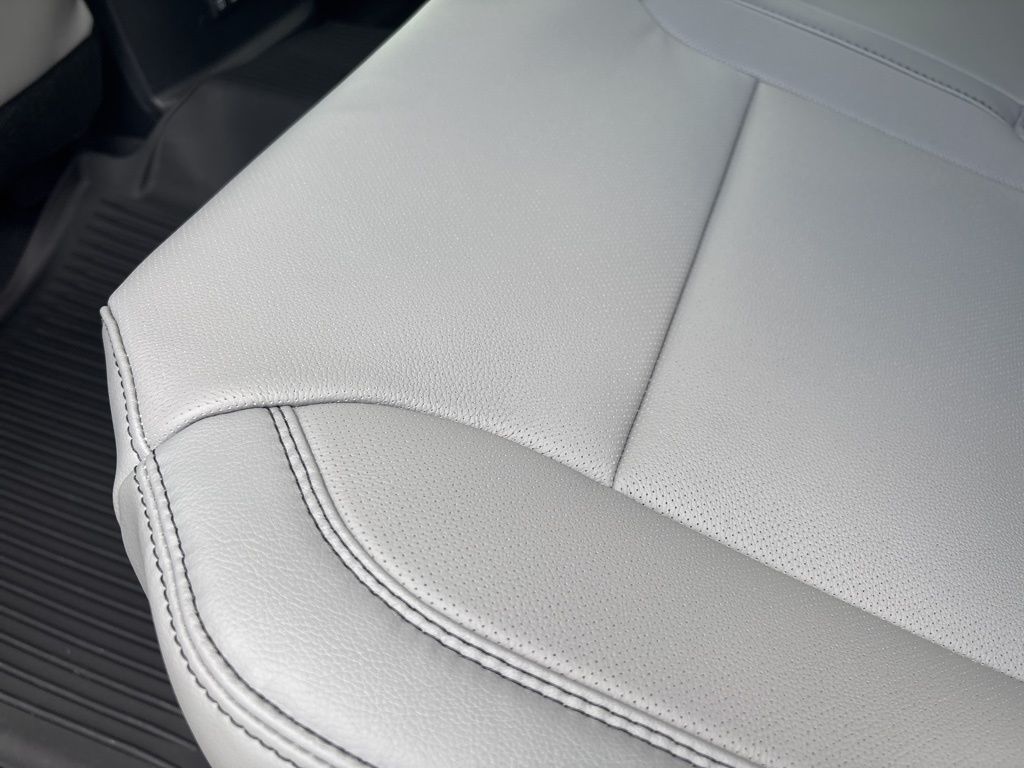 - Leather-trimmed seats with contrast stitching; 8-way power-adjustable driver and front passenger seats with power-adjustable lumbar support