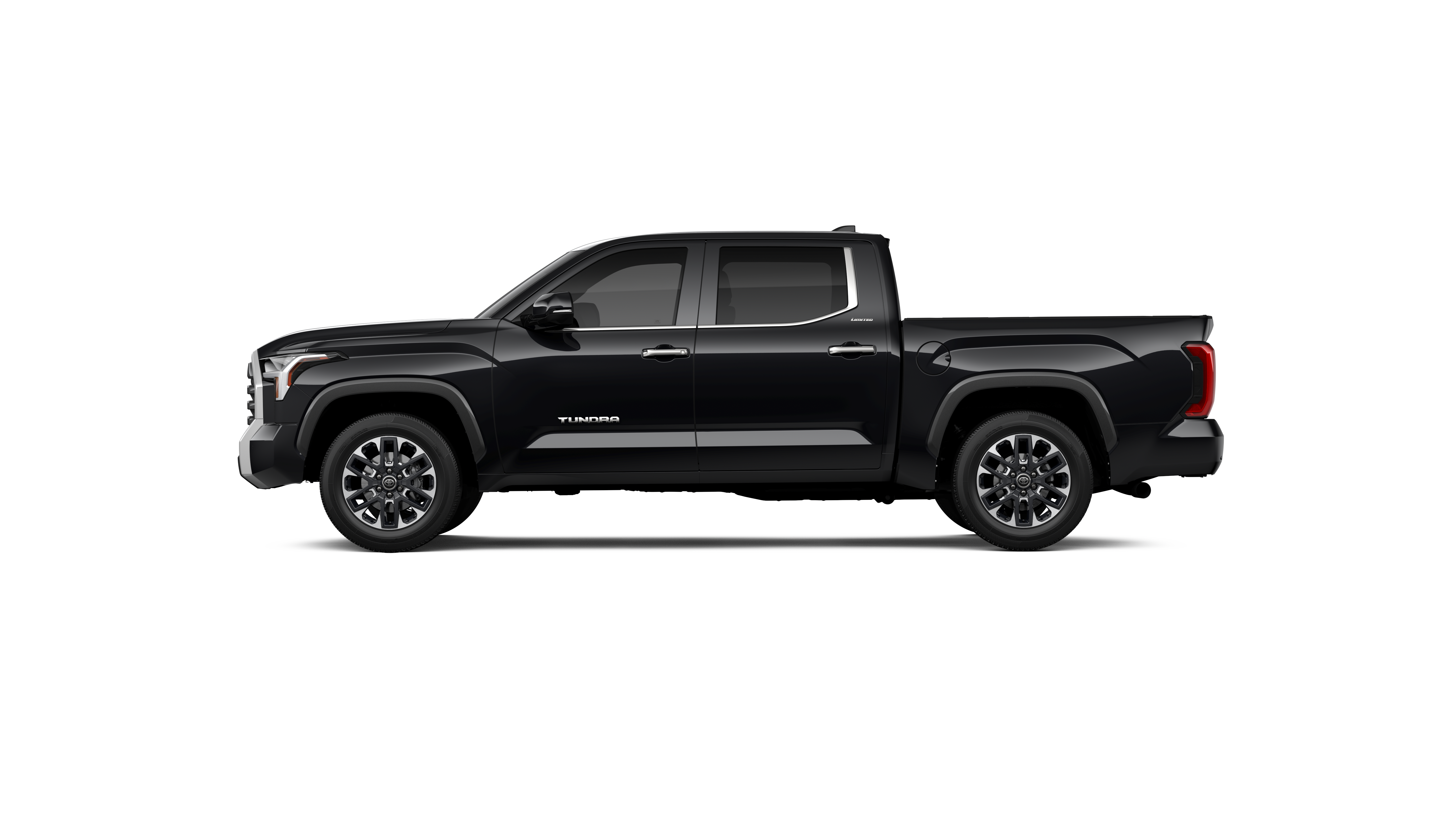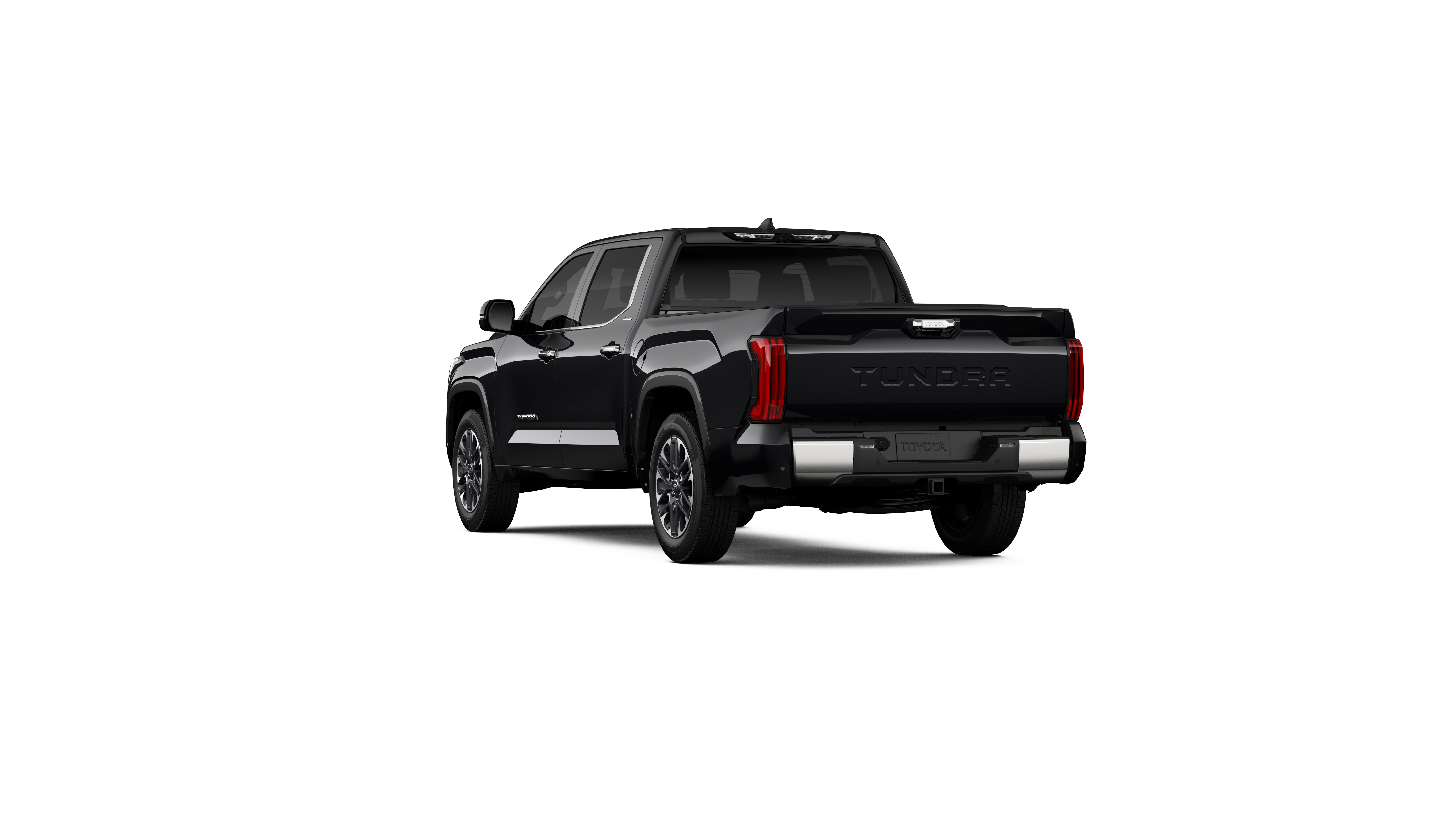 - Chrome "TUNDRA" and "LIMITED" door badges, door handles and window molding; color-keyed mirror caps and tailgate spoiler; gray-painted overfenders